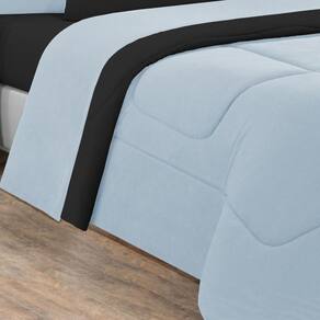 Marca: Enxovais Davy | Estampa: Não se Aplica | Medidas: 01 Edredom King Dupla Face Liso 2,50m x 2,90m02 Porta Travesseiros 70cm x 50cm01 Lençol de Cima 2,50m x 2,90m 01 Lençol Casal de Baixo para colchão 1,93m x 2,03m x 0,30m (Elástico na volta toda)02 Fronhas 70cm x 50cm | Número de Peças: 07 Peças | Material: Agodão | Cor Predominante: Azul Bebê/Preto | Cama Indicada: King