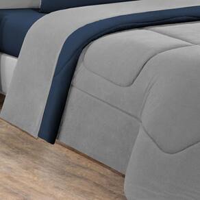 Marca: Enxovais Davy | Estampa: Não se Aplica | Medidas: 01 Edredom King Dupla Face Liso 2,50m x 2,90m02 Porta Travesseiros 70cm x 50cm01 Lençol de Cima 2,50m x 2,90m 01 Lençol Casal de Baixo para colchão 1,93m x 2,03m x 0,30m (Elástico na volta toda)02 Fronhas 70cm x 50cm | Número de Peças: 07 Peças | Material: Agodão | Cor Predominante: Cinza/Azul Marinho | Cama Indicada: King