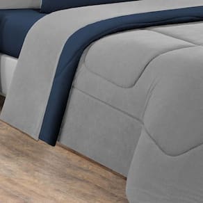 Kit Edredom + Jogo De Lençol Malha 100% Algodão Gran Moratta 7 Peças King - Cinza/azul Marinho