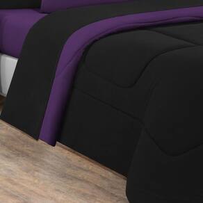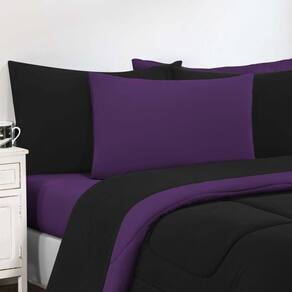 Marca: Enxovais Davy | Estampa: Não se Aplica | Medidas: 01 Edredom King Dupla Face Liso 2,50m x 2,90m02 Porta Travesseiros 70cm x 50cm01 Lençol de Cima 2,50m x 2,90m 01 Lençol Casal de Baixo para colchão 1,93m x 2,03m x 0,30m (Elástico na volta toda)02 Fronhas 70cm x 50cm | Número de Peças: 07 Peças | Material: Agodão | Cor Predominante: Preto/Roxo | Cama Indicada: King