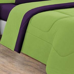 Marca: Enxovais Davy | Estampa: Não se Aplica | Medidas: 01 Edredom King Dupla Face Liso 2,50m x 2,90m02 Porta Travesseiros 70cm x 50cm01 Lençol de Cima 2,50m x 2,90m 01 Lençol Casal de Baixo para colchão 1,93m x 2,03m x 0,30m (Elástico na volta toda)02 Fronhas 70cm x 50cm | Número de Peças: 07 Peças | Material: Agodão | Cor Predominante: Verde Pistache/Roxo | Cama Indicada: King
