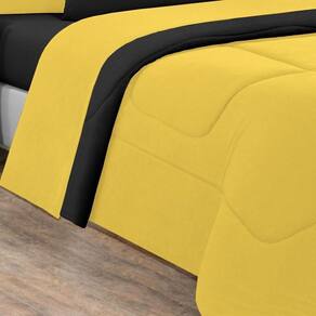 Kit Edredom + Jogo De Lençol Malha 100% Algodão Gran Moratta 7 Peças Queen - Amarelo/preto