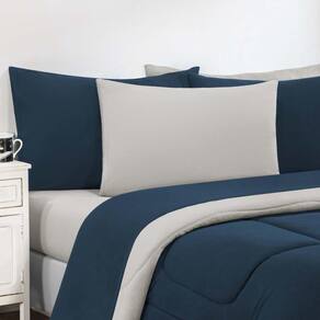 Marca: Enxovais Davy | Estampa: Não se Aplica | Medidas: 01 Edredom Queen Dupla Face Liso 2,20m x 2,40m02 Porta Travesseiros 70cm x 50cm01 Lençol de Cima 2,50m x 2,40m 01 Lençol Casal de Baixo para colchão 1,58x1,98x0,30 (Elástico na volta toda)02 Fronhas 70cm x 50cm | Número de Peças: 07 Peças | Material: Agodão | Cor Predominante: Azul Marinho/Palha | Cama Indicada: Queen