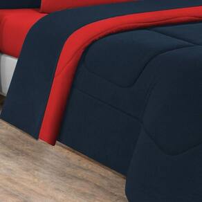 Kit Edredom + Jogo De Lençol Malha 100% Algodão Gran Moratta 7 Peças Queen - Azul Marinho/vermelho