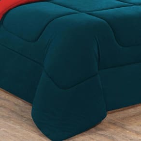 Marca: Enxovais Davy | Estampa: Não se Aplica | Medidas: 01 Edredom Queen Dupla Face Liso 2,20m x 2,40m02 Porta Travesseiros 70cm x 50cm01 Lençol de Cima 2,50m x 2,40m 01 Lençol Casal de Baixo para colchão 1,58x1,98x0,30 (Elástico na volta toda)02 Fronhas 70cm x 50cm | Número de Peças: 07 Peças | Material: Agodão | Cor Predominante: Azul Petróleo/Vermelho | Cama Indicada: Queen