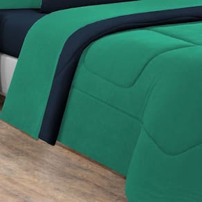 Kit Edredom + Jogo De Lençol Malha 100% Algodão Gran Moratta 7 Peças Queen - Verde Jade/azul Marinho