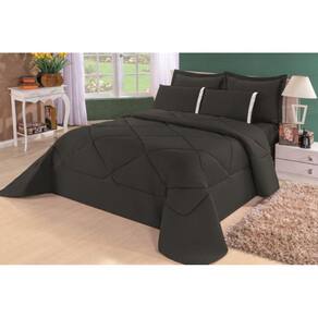 Kit Edredom + Lençol Aconchego Dupla Face Casal Queen 6 PÇ Preto