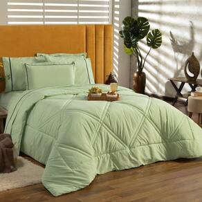A nova coleção Milano traz toda a sofisticação e aconchego. Por possuírem dupla face, apresentam superfície que valoriza ainda mais as cores, confeccionado em pantográfica computadorizada com lindos desenhos geométricos no edredom! Composto em tecido Percal 200 Fios 80% algodão super macio com 200g de enchimento, agregando ainda mais para seu conforto! Acompanhando também dois porta-travesseiros com detalhes no acabamento em Viés super moderno! Ideal para decorar, trazer conforto e tornar o quarto ainda mais convidativo e elegante! Confira!