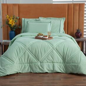 A nova coleção Milano traz toda a sofisticação e aconchego. Por possuírem dupla face, apresentam superfície que valoriza ainda mais as cores, confeccionado em pantográfica computadorizada com lindos desenhos geométricos no edredom! Composto em tecido Percal 200 Fios 80% algodão super macio com 200g de enchimento, agregando ainda mais para seu conforto! Acompanhando também dois porta-travesseiros com detalhes no acabamento em Viés super moderno! Ideal para decorar, trazer conforto e tornar o quarto ainda mais convidativo e elegante! Confira!