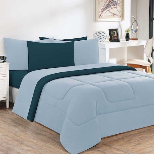 Kit Edredom Malha 100% Algodão Gran Moratta 2 Peças Solteiro - Azul Bebê/azul Petróleo