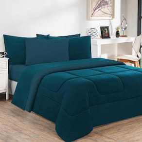Marca: Enxovais Davy | Estampa: Não se Aplica | Medidas: 01 Edredom Casal Dupla Face Liso 2,00m x 2,20m02 Porta Travesseiros 70cm x 50cm | de Peças: 03 Peças | Material: Agodão | Cor Predominante: Azul Petróleo/Azul Petróleo | Cama Indicada: Casal