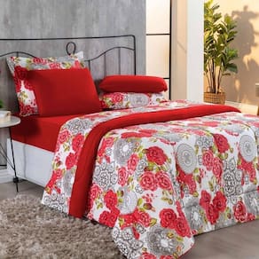 Marca: Enxovais Davy | Estampa: Não se Aplica | Medidas: 01 Edredom Solteiro 1,60m x 2,40m01 Porta Travesseiro 70cm x 50cm | de Peças: 02 Peças | Material: Agodão | Cor Predominante: Floral Vermelho | Cama Indicada: Solteiro