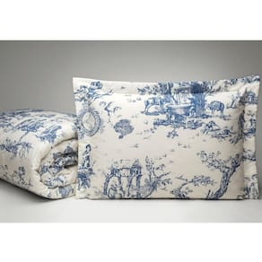 Contém na embalagem: 01 Edredom 2,60m comp x 2,40m larg 02 Porta-travesseiros 75cm x 55cm 01 Lençol de cima com vira estampada 2,60m x 2,30m 01 Lençol de baixo com elástico para colchão de 1,98m x 1,58m x 40cm alt 02 Fronhas 70cm x 50cm