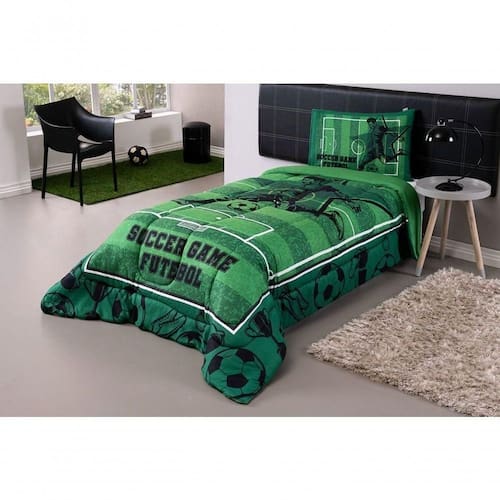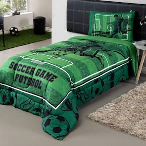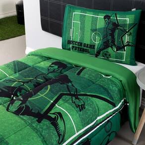 Kit Edredom Plush Fofinho Infantil Dupla Face Dream 2 Peças Solteiro - Futebol