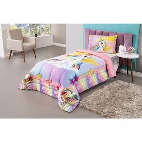 Kit Edredom Plush Fofinho Infantil Dupla Face Dream 2 Peças Solteiro - Unicórnio
