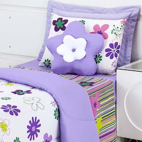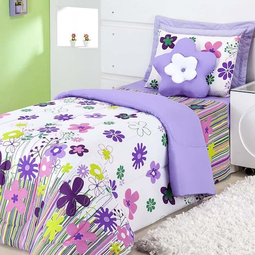 a coleção garden é uma escolha perfeita para quem deseja um quarto moderno e colorido. O edredom garden pink/lilás é um item versátil que pode ser utilizado tanto como peça decorativa quanto para o conforto numa noite fria. Esse kit contém 03 peças, sendo elas: 01 edredom tamanho solteiro, 01 fronha e 01 almofada flor. Conteúdo da embalagem