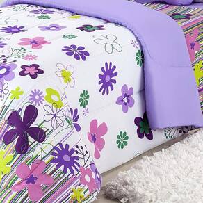 Kit Edredom Solteiro 3 Peças Garden Lilás A coleção GARDEN é uma escolha perfeita para quem deseja um quarto moderno e colorido. O Edredom GARDEN PINK/LILÁS é um item versátil que pode ser tanto como peça decorativa quanto para o conforto numa noite fria. Esse kit contém 03 peças, sendo elas: 01 Edredom tamanho solteiro, 01 Fronha e 01 Almofada Flor. CONTEÚDO DA EMBALAGEM - 01 Edredom 2,10m x 1,50m - 01 Fronha 70cm x 50cm - 01 Almofada Flor 45cm de Diâmetro COMPOSIÇÃO TEXTIL Tecido Superior: 100% Poliéster Tecido Inferior: 100% Poliéster Enchimento: 100% Poliéster Tecido Almofada: 100% Poliéster FICHA TÉCNICA - Quantidade de peças: 03 - Cor: Garden Lilás - Estampado: Sim - Bordado: Não - Fabricação: Matelado em linha ORIENTAÇÕES PARA LAVAGEM - Lavar a mão; - Não lavar junto com outros produtos; - Não deixar o produto de molho, pois roupas de cama de cor forte podem desbotar; - Utilizar sabão neutro. Evite sabão do tipo limpeza profunda e/ou tira manchas; - Lavar com temperatura máxima de 30C; - Não alvejar / não branquear; - Não secar em secador rotativo; - Não lavar a seco; - Passar com temperatura baixa temperatura máxima de 110C ; - Vapor pode causar danos irreversíveis. ATENÇÃO - Verificar as dimensões do produto antes da compra. - É necessário levar em consideração a altura da cama ou a altura do box da cama + colchão, para que o caimento do produto seja perfeito. - Siga as orientações para lavagem para aumentar a vida útil das peças - Variação das cores pode ocorrer de acordo com a configuração do monitor. - Pode ocorrer variação de tonalidade de acordo com o lote do tecido. - As peças decorativas não estão inclusas neste produto. - Foto ilustrativa. Marca: Não Informado Ean: 7898441898682