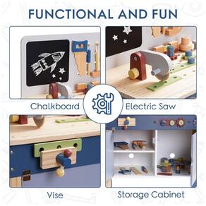 Este conjunto de ferramentas para crianças inclui uma variedade de ferramentas de madeira realistas, como martelo, chave de fenda, chave inglesa, porcas, parafusos e mais, permitindo que as crianças participem de um jogo imaginativo sem fim. Projetado com amplo espaço de armazenamento embutido, esta bancada para crianças oferece muito espaço para as crianças organizarem e guardarem suas ferramentas, promovendo a organização e ajudando a desenvolver habilidades organizacionais. Feito de madeira de alta qualidade e ecológica, esta bancada para crianças é construída para resistir ao uso a longo prazo. As bordas arredondadas e materiais de madeira garantem uma experiência de jogo segura e agradável para crianças pequenas. Ideal para meninos e meninas a partir de 3 anos, esta bancada de ferramentas ajuda a desenvolver habilidades motoras, coordenação mão-olho e habilidades de resolução de problemas, enquanto estimula a criatividade e o jogo de faz de conta. Perfeito para os pequenos, a Bancada de Madeira é um excelente presente para aniversários ou feriados. Um brinquedo versátil que tanto meninos quanto meninas vão adorar, inspirando seu amor por construir e explorar.