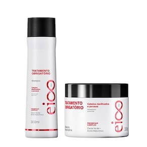 O Kit Eico Pro Tratamento Obrigatório foi desenvolvido para restaurar a saúde dos fios desde a primeira aplicação, oferecendo uma rotina completa de cuidado e reparação. O shampoo 300ml promove limpeza eficaz e suave, removendo resíduos sem agredir o cabelo. Sua fórmula prepara os fios para receber os nutrientes da máscara 300g, que age profundamente para repor massa, fortalecer a fibra capilar e reduzir a quebra. A combinação dos dois produtos devolve vitalidade, maciez e brilho, além de melhorar o alinhamento e controlar o frizz. Ideal para cabelos danificados, sensibilizados ou quimicamente tratados que necessitam de recuperação intensa e rápida.