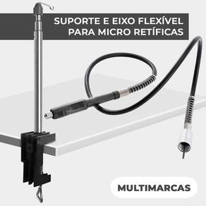 Suporte de Bancada Vertical para Micro Retíficas Charbs - Marca: Charbs - Haste Telescópica - Altura da Haste Fechada: 25cm - Altura da haste toda aberta: 60cm - Espessura máxima do mordente ma mesa: 55mm - Compatível com micro retíficas de todas as marcas: Dremel, Black Decker, Charbs, Fort, Einhell, Mondial, Hammer, Vonder, entre outros. - Peso bruto: 300g Eixo Flexível para Micro Retíficas Multimarcas Chicote 1 metro Dremax - Marca: Dremax - Referência: EF-1 - Comprimento: 1 metro - Alcance Estendido: Com um chicote de 1 metro, este eixo flexível proporciona um alcance estendido, permitindo acesso fácil a espaços apertados e tornando as tarefas intricadas mais acessíveis. - Compatível com as principais micro retíficas do mercado, como Dremel 3000, Hammer, Wesco, Mondial, Titanium, Gamma, Einhell, Sagyma, Nove54, Vonder, AWT, Fort, Dexter, Black Decker, Charbs, Mallory, Western, entre outras. - Não adapta a Dremel 4.000 - Ideal para trabalhos delicados de precisão - Excelente dissipação de calor, não aquece o cabo - Transforme a sua Micro Retífica em uma ferramenta mais versátil - Ideal para lugares difíceis de alcançar e trabalhos finamente detalhados - Este eixo flexível é o complemento perfeito para sua ferramenta rotativa - Amplamente utilizado com kits de polimento, brocas, escovas de aço, escareadores, rodas lamelares, pedras montadas e rebolo - É recomendado a lubrificação dos rolamentos para aumento de vida útil e resfriamento do conjunto - Qualidade - Comprimento do eixo: 80cm - Comprimento total: 1.08 metro - Acompanha chave em L para travar o mandril - Peso bruto: 300g - : 90 dias