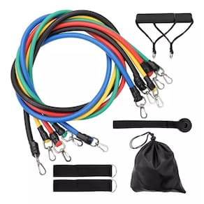 O Kit Tubing 11 peças é perfeito para quem quer fortalecer, tonificar e definir os músculos. Ele vem com elásticos em forma de tubo feitos de látex de alta qualidade e resistência. Cada elástico tem diferentes resistências. É possível realizar os exercícios usando 1 ou até 5 elásticos ao mesmo tempo, criando assim mais de 30 níveis diferentes de resistência.