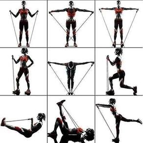 Kit elástico para treino exercícios malhar musculação em casa Sua oportunidade de fazer exercícios em casa com equipamentos de qualidade. Ideal para definir, tonificar e fortalecer os músculos. Elásticos, em forma de tubo feitos 100% de látex natural de alta qualidade e resistência. Cada elástico tem resistências diferentes para que você possa variar da forma que quiser e flexibilizar o seu treino. É possível realizar os exercícios usando 1 ou até 5 elásticos ao mesmo tempo, criando assim 30 níveis diferentes de resistência.