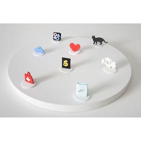 Kit Elementos Sistêmicos Kit Elementos Sistêmicos desenvolvido em E.V.A para complementar o kit de bonecos utilizado durante intervenções terapêuticas e Constelações Familiares na água e/ou na mesa. 8 representantes, sendo: gato + cachorro + dinheiro + carro + livro + coração + sexualidade + doença. Produto exclusivo. O campo mórfico não acompanha o produto. *Fotos meramente ilustrativas.