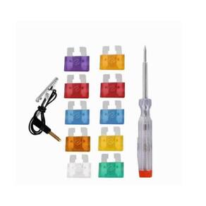 Tenha praticidade e segurança para o sistema elétrico do seu veículo com este completo Kit Elétrico Automotivo Ideal para manutenção e substituição de fusíveis, ele inclui uma chave de teste para identificar falhas rapidamente e manter o funcionamento perfeito do seu carro.
