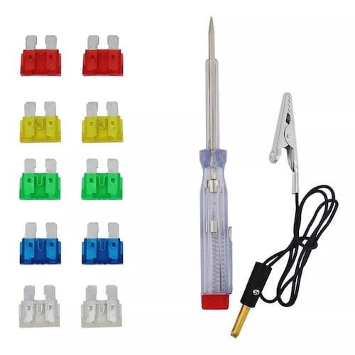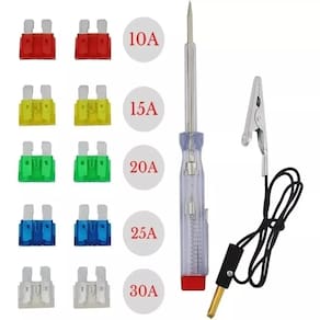 Mantenha seu veículo em perfeito funcionamento e esteja preparado para qualquer eventualidade elétrica com o Kit Elétrico Automotivo de 12 Peças. Este conjunto é essencial para motoristas que desejam garantir a segurança e a funcionalidade do sistema elétrico do seu carro. Ideal para reparos emergenciais e manutenção regular, o kit inclui fusíveis variados e uma chave de teste para facilitar a identificação de problemas elétricos. Quando necessário, substitua o fusível queimado por outro novo da mesma amperagem, seguindo as instruções contidas no manual do proprietário. Atenção: não tente usar fusível de maior amperagem para não perder a principal característica do produto que é a proteção do circuito. Utilizar um fusível com amperagem menor que o indicado pelo fabricante do automóvel, poderá queimar o fusível mais facilmente. O kit contém uma variedade de fusíveis e uma chave de teste, garantindo que você tenha as ferramentas necessárias para lidar com diversas situações elétricas no seu veículo. Inclui fusíveis em diferentes amperagens (10A, 15A, 20A, 25A e 30A), feitos com materiais duráveis e de alta qualidade para garantir segurança e eficiência na proteção dos circuitos elétricos. Acompanha uma chave de teste que facilita a identificação de circuitos ativos e a verificação rápida de fusíveis e conexões elétricas, ajudando a diagnosticar problemas com precisão. Compatível com a maioria dos veículos automotivos, incluindo carros, motos, caminhões e SUVs, proporcionando uma solução versátil para diferentes necessidades. Organize em um estojo compacto e resistente, facilitando o armazenamento e transporte, além de manter as peças protegidas e prontas para uso. A chave de teste é uma ferramenta indispensável para diagnosticar problemas elétricos em veículos. Ela permite verificar a presença de corrente elétrica em diferentes partes do sistema, ajudando a identificar falhas e pontos de mau contato. Estes fusíveis são projetados para proteger os circuitos elétricos do veículo contra sobrecargas e curtos-circuitos, garantindo a segurança e o bom funcionamento dos componentes eletrônicos do carro.