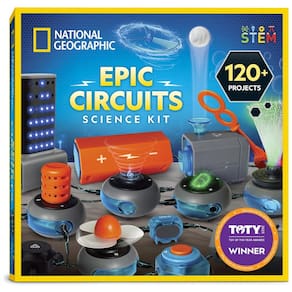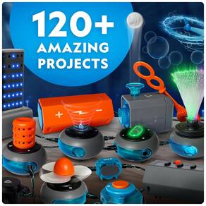 Este kit com 120 projetos é a maneira perfeita de introduzir as crianças ao fascinante mundo da eletricidade! Com mais de 120 projetos divertidos e atividades para completar, este conjunto manterá as crianças entretidas por horas a fio, enquanto aprendem como os circuitos funcionam e muito mais. As experiências neste kit apresentam uma ampla gama de possibilidades elétricas! Crie músicas no modo teclado, faça um show de luzes super legal, voe com um helicóptero, construa um sistema de som para amplificar sua voz e muito mais! Projetos seguros com instruções em vídeo amigáveis para crianças. Os componentes deste kit de ciências são projetados para garantir total segurança. As instruções ilustradas são fáceis de seguir e há um código QR para instruções em vídeo, tornando tudo divertido e fácil para as crianças! Sem necessidade de ferramentas. Os componentes neste kit se conectam facilmente com os fios incluídos, portanto, nenhuma ferramenta adicional é necessária! Os fios se encaixam de maneira segura em cada componente elétrico, garantindo uma conexão sólida para seus projetos. Produtos premiados. Blue Marble, vencedora do prestigioso prêmio de Brinquedo do Ano da Toy Association, desenvolve com orgulho produtos que promovem educação, imaginação e criatividade.