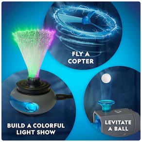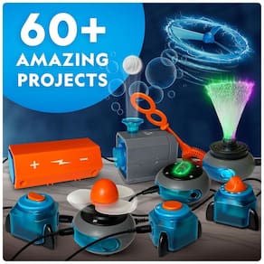 Com este kit, as crianças terão a oportunidade de explorar as maravilhas da eletricidade! Com mais de 60 projetos e atividades divertidas para completar, este conjunto manterá as crianças entretidas por horas a fio enquanto aprendem como os circuitos funcionam e muito mais. As atividades envolvem possibilidades elétricas incríveis, como acender um feixe de fibra ótica para criar um show de luzes coloridas, levitar uma bola, voar com um helicóptero, projetar imagens e muito mais! Os projetos são seguros e incluem instruções em vídeo, facilitando o aprendizado das crianças. Não são necessárias ferramentas adicionais, pois os componentes se conectam facilmente com os fios incluídos. Os fios se encaixam perfeitamente em cada componente elétrico, garantindo uma conexão sólida. Desenvolvido pela Blue Marble, vencedora do prestigiado prêmio Toy of the Year Award da Toy Association, este kit promove a educação, imaginação e criatividade.