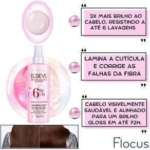 Kit Elseve Sérum Leave In Liso dos Sonhos Cicatri Glycolic Bem vindo a a loja Flocus. É um prazer tê-lo a como nosso a cliente CONTEÚDO DO KIT: 1 Elseve Sérum Leave-in Liso Por 1 Semana Liso dos Sonhos L'oreal Paris - 100ml 1 Sérum Elixir Prolongador de Gloss L'Oréal Paris Elseve Glycolic Gloss - 100ml 1 Spray Acidificante Elseve Glycolic Gloss - 200ml 1 leave-in Cicatri Renov Elseve Reparação Total 5 - 50ml Chegooou A nova linha Elseve Liso dos Sonhos proporciona cabelos lisos, alinhados e sem frizz por 1 semana O Sérum Leave-in LOréal Paris Elseve Liso dos Sonhos é um finalizador capilar desenvolvido para quem deseja um cabelo mais liso, alinhado e protegido contra a umidade. Sua tecnologia ativada por calor cria uma barreira invisível na fibra capilar, proporcionando um efeito de cabelos lisos por até 1 semana. Resultados que resistem até 5 lavagens Cabelo poroso e sem brilho A linha Elseve Glycolic Gloss de LOréal Paris garante 3X mais gloss que resiste a 6 lavagens. Sua fórmula com pH Ácido rica em Ácido Glicólico, combate a porosidade e sela as cutículas para um cabelo visivelmente saudável e alinhado para um brilho gloss. O sérum Prolongador de Gloss Elixir, com uma inovadora fórmula com pH ácido e enriquecida com 3% Complexo com Ácido Glicólico, filtro UV e proteção térmica, possui tripla ação: 1. Sela intensamente os fios, preenchendo as falhas da fibra capilar. 2. Na superficie, lamina a cutícula, alinhando-a para refletir a luz. 3. Protege os fios contra futuras agressões externas. Cabelo visivelmente saudável e alinhado para um brilho gloss que dura até 72h. O Acidificante Capilar Ultra Gloss da linha Elseve Glycolic Gloss de LOréal Paris possui uma fórmula rica em Ácido Glicólico e pH ácido, este produto combate a porosidade dos fios desde o primeiro uso, impulsionando o gloss no cabelo. A aplicação regular do Acidificante Ultra Gloss resulta em um cabelo visivelmente saudável e alinhado, com um brilho gloss intenso. O Leave-In Cicatri Renov Elseve Reparação Total 5 identifica e repara os danos fio a fio do cabelo sem pesar. Possui 10 benefícios para uma plástica capilar: Reparação instantânea; Selagem das pontas; 100% mais brilho; Maciez profunda; Toque deslizante; Desembaraço imediato; 10x menos quebra; Anti-frizz; Anti-umidade; Proteção térmica. Para todos os tipos de cabelo, renova e protege a qualquer hora e em qualquer lugar. Pode ser com o cabelo seco ou molhado, antes ou depois do secador. MODO DE USO: Acidificante Spray: Ainda com o condicionador aplicado, sem enxaguar, divida o cabelo em quatro partes: Use o spray diretamente nos fios cobrindo-os do comprimento as pontas, Em seguida, espalhe com as mãos Deixe agir por 5 minutos Enxague. OBS: É recomendado utilização 2x por semana ou quando sentir necessidade de um boost de brilho. Sérum: aplique somente nos cabelos úmidos, do comprimento as pontas cobrindo todos os fios. na 1 aplicação da semana, ative a fórmula com a chapinha após a secagem. ao longo da semana, após cada lavagem reaplique e ative somente com o secador. esqueça a chapinha por 1 semana. agite antes de usar. Elixir: Aplicar nos cabelos molhados ou secos Pode usar antes da escova ou como finalizador para malear a fibra Sem enxágue. Leave-in: Distribua uma pequena quantidade nos fios secos ou úmidos, do comprimento às pontas. Não enxague OBS: Com proteção térmica, pode ser antes ou depois de escova ou chapinha. Agradecemos por escolher a Loja Flocus e por confiar em nós para cuidar da beleza dos seus cabelos. Em caso de dúvidas, favor enviar sua pergunta Flocus