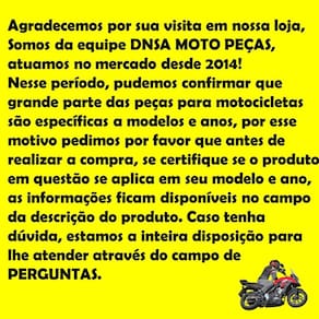 Nesse Período, Pudemos Confirmar Que Grande Parte Das Peças Para Motocicletas São Específicas A Modelos E Anos, Por Esse Motivo Pedimos Por Favor Que Antes De Realizar A Compra, Se Certifique Se O Produto Em Questão Se Aplica Em Seu Modelo E Ano, As Informações Ficam Disponíveis No Campo Da Descrição Do Produto.