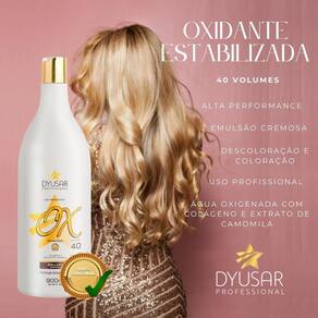 Modo de uso: Misturar a emulsão oxidante com a tintura ou descolorante, conforme as proporções de diluição aconselhadas para cada tipo de produto. Cuidados: contém substâncias passíveis de causar alergia na pele. Antes de usar, faça a prova de toque. Não usar nos cílios e sobrancelhas pois pode causar irritação nos olhos ou cegueira. Não aplicar se o couro cabeludo estiver irritado ou lesionado. Em caso de contato, enxaguar com água abundantemente. Manter fora do alcance das crianças. Evitar exposição ao sol. Contém peróxido de hidrogênio. Usar luvas adequadas. Usar luvas apropriadas. Respeitar o tempo de pausa. Não utilizar ferramentas metálicas. Tempo de uso: Até 50 minutos. Este produto deve ser utilizado apenas por um cabeleireiro. Prova de toque: aplicar pequena quantidade no antebraço ou atrás da orelha. Deixar sobre a pele uma hora. Em seguida enxaguar o local. Aguardar 24 horas. Caso surja sinais de irritabilidade, não utilizar o produto. Dy Plex Protetor de Descoloração DYUSAR Cosméticos 300 ml, é um restaurador capilar que proporciona proteção nos processos de coloração e descoloração.168745/2019-34 Modo de usar: Adicione de 10 a 12 ml do blond plex a um recepiente de coloração ou descolororação e siga corretamente o passo a passo e as recomendações correspondentes ao produto utilizado. Marca: Não Informado