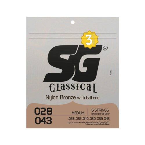 Kit encordoamento violão sg nylon 65/35 5280tp t.Media bronz Por isso viemos te contar sobre o triple pack: e o seu jogo de cordas favorito com 3 sets de encordoamentos e mais 3 cordas mi isso e muito mais vantagem de preco e durabilidade alias, os jogos de cordas sao embalados individualmente para garantir a integridade conforme voce^ for usando tensão e1 b2 g3 d4 a5 e6 b7 medium .028 .032 .040 .030 .035 .043 -