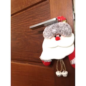 Leve o que há de melhor para sua casa e tenha uma decoração de natal incrível!     Itens inclusos: -02 unidades Decora Maçaneta Porta Papai Noel Pelúcia 27cmx17cm c/ Guizo Gorro