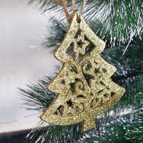 Kit enfeite de natal 10 cm wincy com 2 pinheiros em glitter árvore de natal nta11004