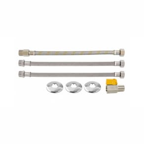 Kit Engate Flexivel Aquecedor Passag. 0,40M 180517 - Blukit Cor: cromado Kit para aquecedor de passagem Produzidas dentro dos mais avançados padrões de tecnologia e qualidade, as ligações flexíveis blukit para gás são resistentes a ambientes rigorosos e a altas e baixas pressões.A malha em aço inoxidável assegura resistência a qualquer intempérie, garante flexibilidade, absorve ruídos e vibrações, além de proporcionar perfeito acabamento às peças. Ideal para o uso em fogões, fogareiros, aquecedores de passagem e fogões industriais, as ligações flexíveis para gás também podem, eventualmente, ser utilizadas para conduzir água.Características Referência: 180517Material: liga de cobre, elastômeros e aço inoxidável aisi 304Comprimento: 0,4 mRosca: 1/2 x 1/2 (mxf) Detalhes Pressão máxima: 15 baro Kit acompanha:1 ligação extensiva para gás (passagem interna de 8 mm)1 válvula de esfera2 ligações extensivas para água quente e fria (passagem interna de 12 mm)3 canoplasObs: produto vendido por unidade.Imagem meramente ilustrativa.Dimensões do produto sem embalagem.O que vem na caixa01 kit para aquecedor