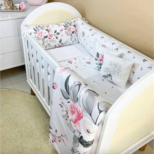 Kit Enxoval de Berço 9 peças Micropercal Poliéster 200 Fios - Infanto Floral
