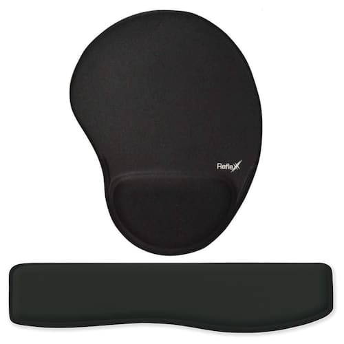 Kit ergonômico mouse pad + apoio de pulso para teclado preto O combo acompanha um apoio ergonômico para teclado descanso de punho - emborrachada revestida de tecido e um mouse pad gel ergonômico com apoio de pulso em gel para mais conforto ao seu braço. Base emborrachada para fixar melhor na mesa.