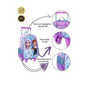 Kit Escolar 3 Peças Frozen Completo O reino de Arendelle chegou à sua escola Com este kit Frozen completo, sua pequena aventureira poderá levar a magia de Arendelle para a sala de aula. A mochila com rodinhas, a lancheira prática e o estojo duplo, todos personalizados com as irmãs Elsa e Anna, farão a alegria das fãs do Frozen. Principais características: Design exclusivo Frozen: Com as princesas Elsa e Anna em destaque, esse kit é um sonho para qualquer fã. Mochila de rodinha com ajuste de altura: Facilita o transporte dos materiais escolares e proporciona mais conforto para a criança, adaptando-se ao tamanho da criança. Lancheira: Com forro térmico é ideal para guardar lanches e bebidas mantendo a temperatura, com alça regulável para maior conforto. Estojo duplo: Espaço suficiente para organizar lápis, canetas e outros materiais. Zíper resistente: Garante maior durabilidade e segurança em todos os itens. Bolsos laterais: Ideais para guardar garrafinhas ou outros objetos pequenos. Alça de mão e de costas: Versatilidade para carregar a lancheira da forma mais confortável. Detalhes personalizados: Tornam o kit ainda mais especial e único. Por que escolher este kit Completo e prático: Tudo o que sua filha precisa para a escola em um único kit. Design exclusivo: O Frozen é a paixão de muitas meninas e este kit traz a magia para a escola. Conforto e praticidade: Rodinhas, alças e compartimentos garantem o conforto e a organização. Durabilidade: Materiais de alta qualidade garantem longa vida útil. Perfeito para presente: Ideal para aniversários, volta às aulas ou qualquer outra ocasião especial. Em resumo, este kit Frozen é a escolha perfeita para as pequenas fãs da Disney. Com ele, a hora de ir para a escola será ainda mais divertida e cheia de magia Ideal para: Meninas fãs de Frozen: Um presente perfeito para encantar as pequenas princesas. Dia a dia escolar: Organiza os materiais escolares e torna o caminho para a escola mais divertido. Viagens e passeios: Ideal para transportar brinquedos e lanches.
