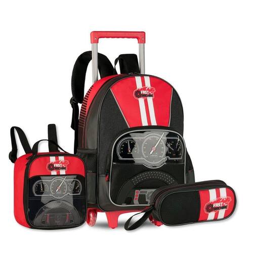 O Kit Fast Machine une design moderno, praticidade e muita diversão A Mochila de Carrinho FM25030 é confeccionada em poliéster resistente, possui puxadores de metal personalizados e etiquetas emborrachadas que deixam o visual ainda mais moderno. Seu compartimento principal é amplo e ideal para guardar todo o material escolar, com fechamento por zíper e bolso frontal que ajuda a manter tudo bem organizado. Nas laterais, os bolsos telados permitem carregar garrafinhas com facilidade. O destaque fica por conta do painel frontal com luzes que piscam ao bater, tornando a mochila divertida e interativa Conta ainda com rodinhas resistentes, puxador em alumínio com duas alturas, base de apoio e alças de costas acolchoadas, permitindo o uso como mochila ou no modo carrinho. Possui também alça de mão superior. Dimensões aproximadas: 40x30x13cm. Acompanha Lancheira térmica FM25032, espaçosa e com revestimento interno que mantém a temperatura dos alimentos, com alça de costas, alça carona e alça de mão. 23x23x11cm E para completar, o Estojo FM25033, com estampa combinando, zíper personalizado e excelente espaço interno para guardar lápis e canetas. 21x9x6cm Marca: Não Informado Ean: 7795028709419