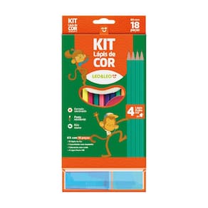 Marca: Leo & Leo Ref: 0120 Graduação do Grafite: Nº 2/HB Atóxico: Sim Composição: Resina plástica, pigmentos e cera Contém: 1 Kit Escolar Leo E Leo Itens: 12 Lápis de cor, 4 Lápis grafites, 1 Apontador com depósito e 1 Borracha com cinta.