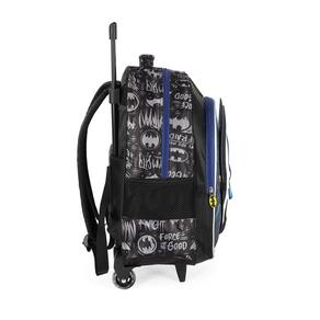 1. Mochila de Rodinhas G Luxcel Batman Destaque: Estampa frontal poderosa do rosto do Batman (Efeito 3D/Relevo). Funcionalidade: Carrinho embutido, haste retrátil e rodinhas resistentes para fácil locomoção. Versatilidade: Possui alças de costas e alça de mão. Organização: Amplo espaço (Tamanho G), bolso frontal e bolsos laterais em mesh para garrafa.