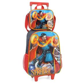 Kit escolar doutor estranho mochila rodinha + lancheira