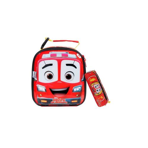 Kit Escolar Equipe Resgate Lancheira Térmica + Estojo Duplo Lancheira: Confeccionada em Poliéster Isolamento térmico Alça de mão ajustável Design exclusivo Fechamento em zíper Medidas aproximadas: Altura: 22 cm Largura: 8 cm Comprimento: 18 cm