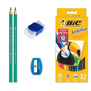 Prepare-se para a temporada escolar com este Kit que conta com 12 Lápis de Cor BIC Evolution, 2 Lápis Pretos, 1 Borracha e 1 Apontador. Oferecendo uma solução prática para iniciar os estudos dos pequenos, este Kit tem um custo-benefício com o selo de qualidade BIC.