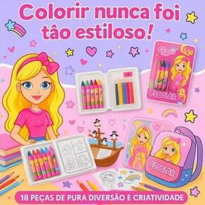 É uma excelente opção para atividades escolares e momentos de criatividade em casa, oferecendo os materiais essenciais para desenhar, colorir e se divertir com segurança e praticidade.
