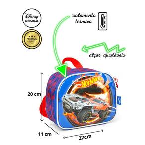 A lancheira térmica Hot Wheels é produzida em poliéster e também possui um painel frontal em PVC. Com um sistema de alça carona, você pode acoplar a lancheira à mochila de rodinhas, facilitando ainda mais o transporte. O fechamento por zíper garante a segurança dos alimentos, e a lancheira também possui um identificador no verso para colocar o nome do seu filho. Vale ressaltar que a lancheira não acompanha garrafinha e potinho.