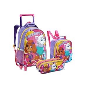 Kit Escolar Infantil Dog Heroes Friends 16 - Seanite Informações do Produto: O kit escolar infantil dog heroes friends é composto por mochila de rodinha, lancheira e estojo. Possui identificador no verso, elástico interno para fixação da garrafa na mochila. Design moderno e material de excelente qualidade.